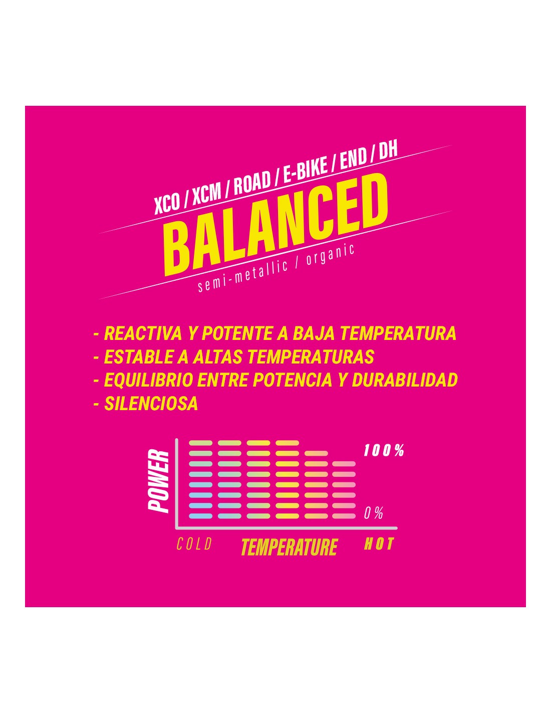 Las LESS Brakes Balanced utilizan un compuesto semi metálico que entrega una frenada directa, silenciosa y estable. Son ideales para uso trail, XC y enduro ligero, con una excelente relación calidad–precio y un comportamiento predecible en todo momento.